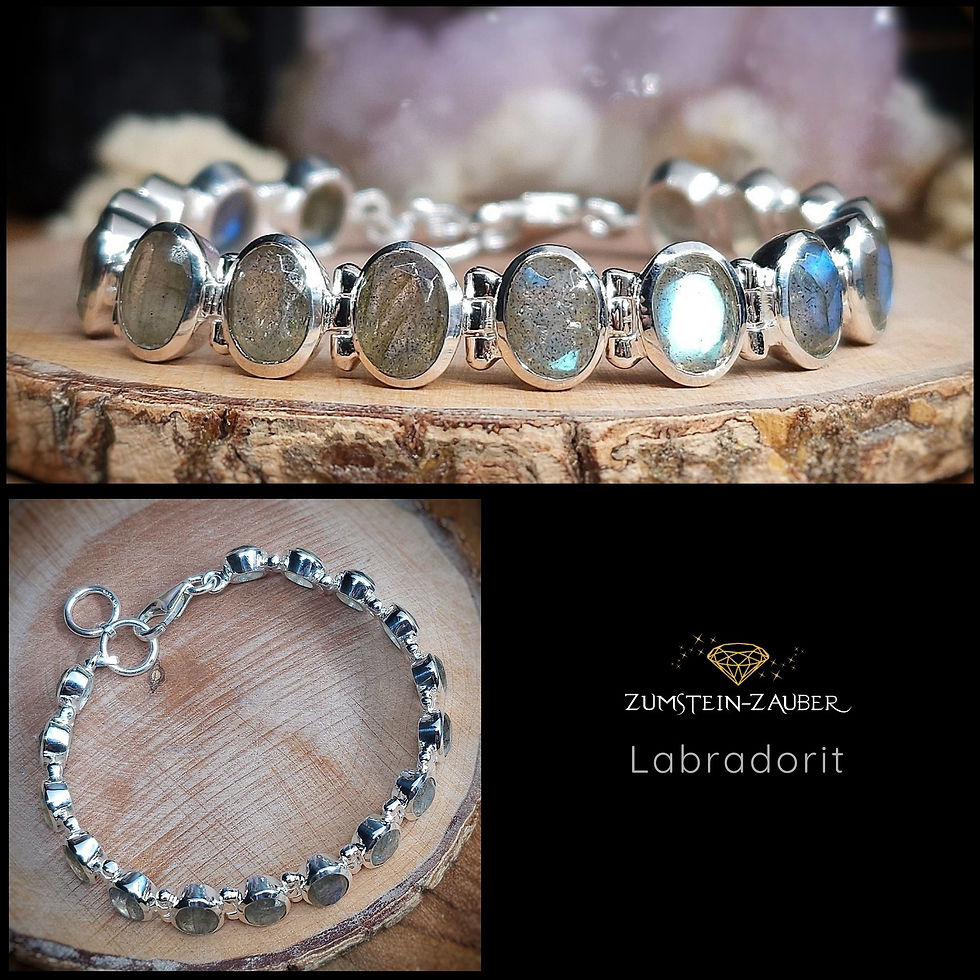 Armband - Weisser Labradorit, Rosenquarz, Topas & Labradorit