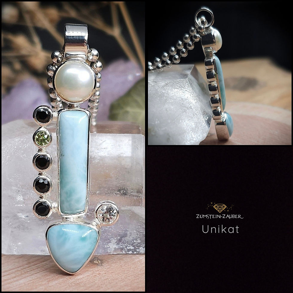 Anhänger - Larimar, Spinell, Perle, Topas & Peridot
